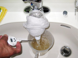 本施工では、電解酸性水とクエン酸を混ぜたものを濃度を上げ、ペーハー・温度管理をし、当社規定の仕様にて用います。