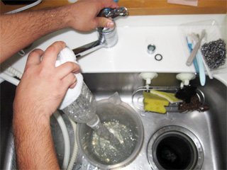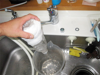洗浄水により、給水管の錆・銅管の緑青をクリーニングした後、ピンホール等の不具合がないことを確認。