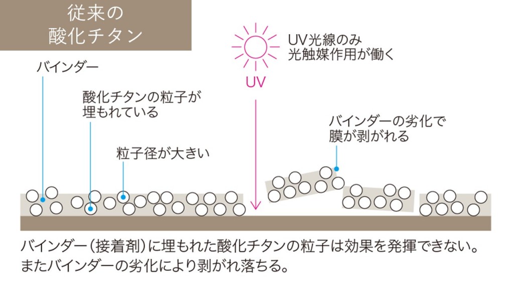 従来の酸化チタンを使用した光触媒加工とナノゾーンコートの決定的な違い