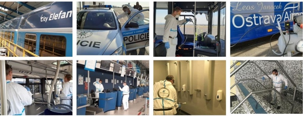 ナノゾーン本社のある中央ヨーロッパのチェコ共和国では、警察車両の抗菌・防臭やバス、電車飛行機などの交通機関の消毒清掃、スポーツ施設の洗面や共同浴場の殺菌・消臭、福祉施設などにもナノゾーンコートが使われています。